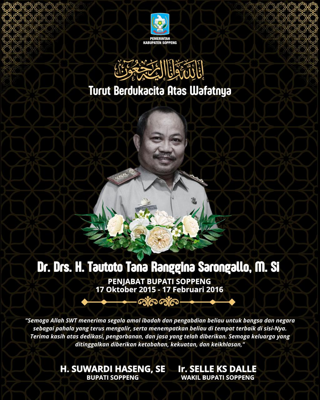 Pemerintah Kabupaten Soppeng bersama seluruh masyarakat menyampaikan duka cita yang mendalam seraya mendoakan semoga almarhum mendapatkan tempat terbaik di sisi Allah SWT, diampuni segala khilafnya, serta keluarga yang ditinggalkan diberikan kekuatan dan ketabahan menghadapi musibah ini.