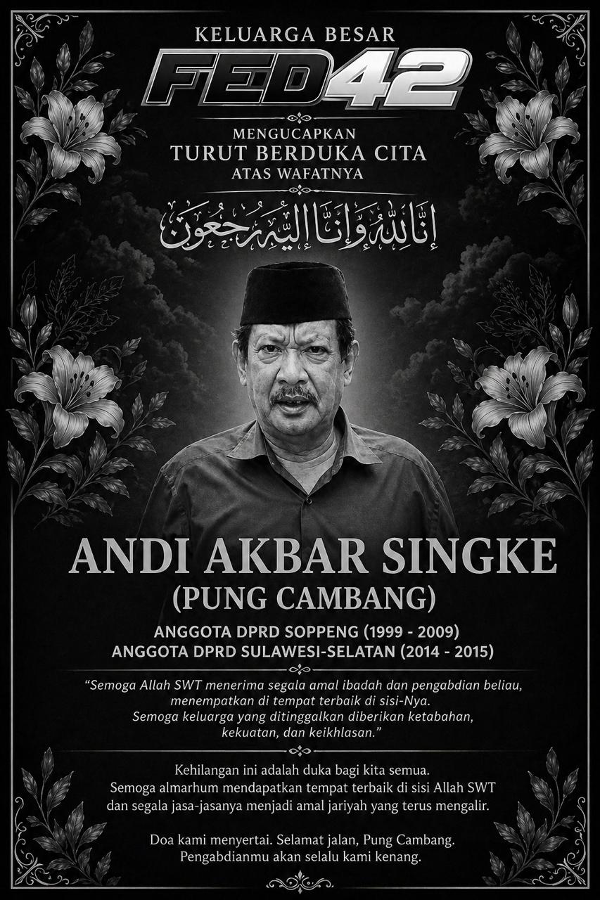 Soppeng — Kabar duka datang dari Kabupaten Soppeng. Mantan anggota DPRD Kabupaten Soppeng, Andi Akbar Singke yang akrab disapa Pung Cambang, dikabarkan meninggal dunia.